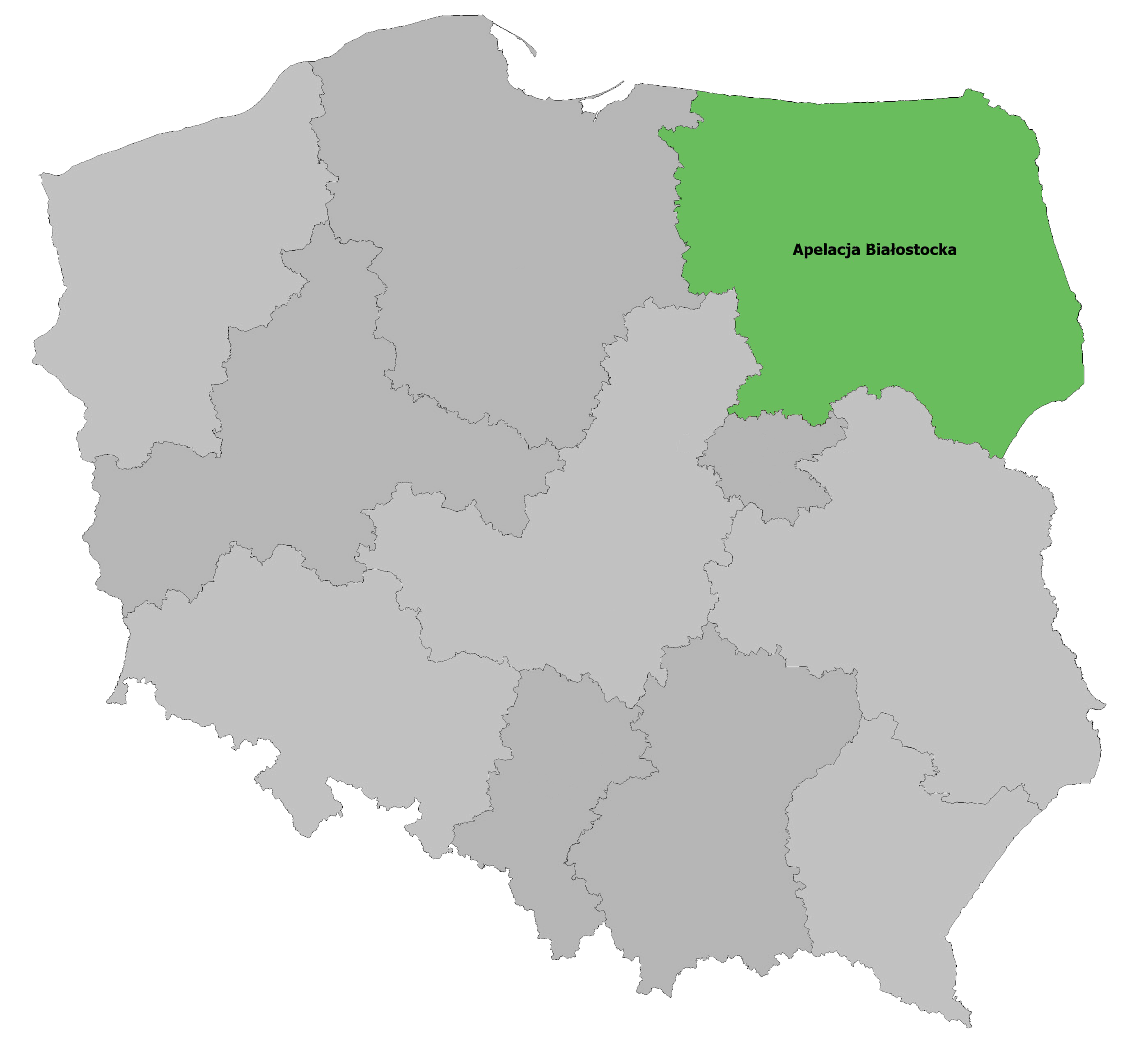 Obszar apelacji białostockiej na terenie, której nasza kancelaria może przyjmować sprawy z właściwości następujących sądów rejonowych, obejmuje obszary: